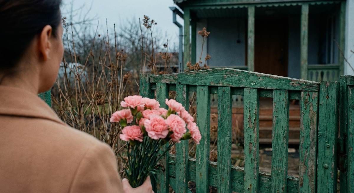 Мы смотрели друг на друга. Я – с букетом гвоздик. Она – с лейкой. Между нами – калитка, три метра двора и двадцать лет, которые никто не вернёт.