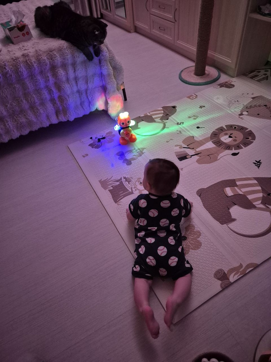 Включила Никите пчёлку, чтобы пойти подготовить ванную для купания. Прихожу, а Толик уже тут как тут 🤣