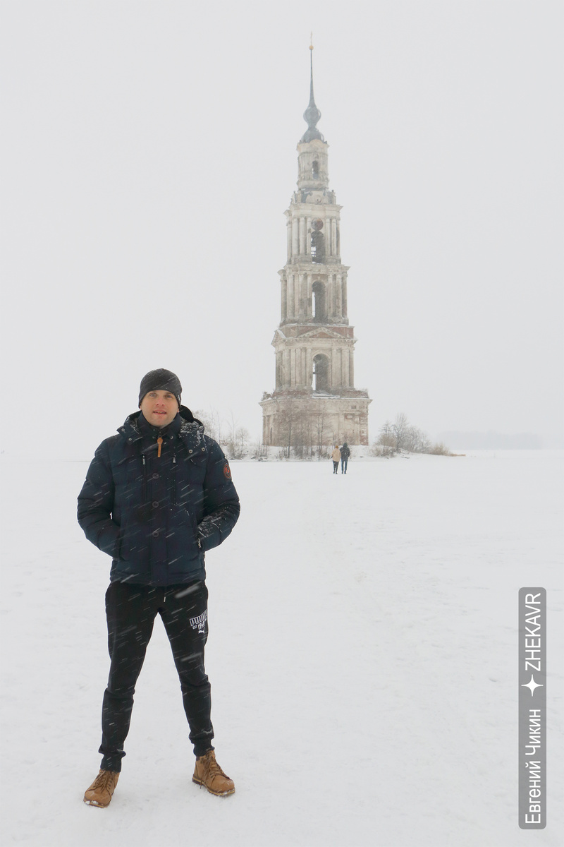 Приветствую тебя, дорогой мой читатель! В этой статье хочу рассказать об одном из своих автопутешествий по зимней «сказке», которое спланировал, чтобы скоротать длинные новогодние каникулы. Обязательно укажу все локации. Не буду утомлять описанием продумывания маршрута и сборами в дорогу, об этом можно почитать в моих статьях «Чек-лист путешественника...» и «Снаряжение для кемпинга и автопутешествий...», сразу перейду к сути. Впереди 7-мь городов, и первым на маршруте был Калязин. Новогодние выходные могут показаться бесконечными, если их провести за столом у телевизора, но если запланировать много интересного, время просто тает на глазах. Поэтому для посещения были выбраны самые, на мой взгляд, привлекательные локации. Во-первых, КОЛОКОЛЬНЯ, построенная в 1800 году при Николаевском соборе бывшего Николо-Жабенского монастыря. Подробную историческую справку можно найти на просторах интернета, я лишь хочу упомянуть, что при строительстве Угличской ГЭС, которую планируем посетить далее, и