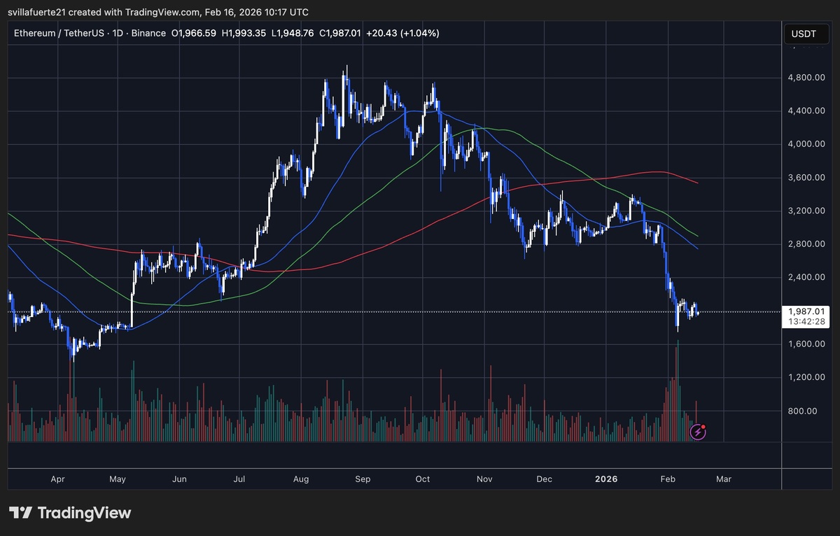 Крупный игрок, известный как кит Hyperunit, продал около $500 млн в ETH на фоне продолжающегося давления на Ethereum. Этот шаг был частью неудачной попытки диверсифицировать свой портфель из биткойнов в Ethereum, что привело к значительным убыткам. 📊 Ключевые моменты: - Кит Hyperunit, крупный держатель биткойнов, перевел 39,738 BTC (на сумму $4,49 млрд) в ETH в августе 2025 года. - Общие потери кита оцениваются в $3,7 млрд от заемных средств и спотовых позиций ETH/BTC, а также $1,2 млрд нереализованных убытков от стейкинга ETH. - Ethereum борется за отметку в $2,000 из-за постоянного давления продавцов и высокой волатильности. - На графике ETH наблюдается серия более низких максимумов с конца 2025 года, когда цена превышала $4,000. - Технически ETH торгуется ниже ключевых скользящих средних, что сигнализирует о медвежьем импульсе.