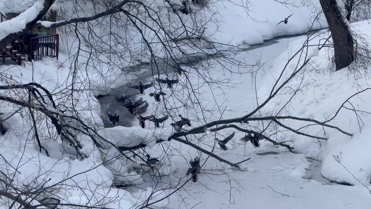 Нынче здесь обжилась на зиму целая стая примерно из двадцати уток.