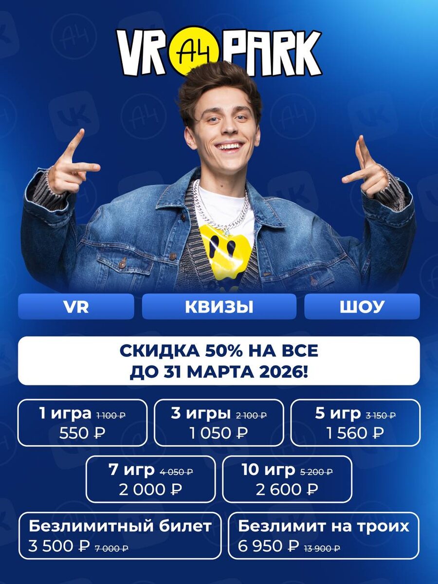 Мы продлеваем скидку 💙💙💙💙 в A4 VR PARK по промокоду ТГ50