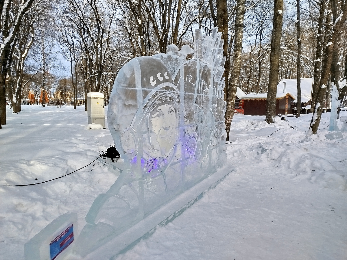 Ледяные скульптуры в честь 65-летия полёта Юрия Гагарина в космос