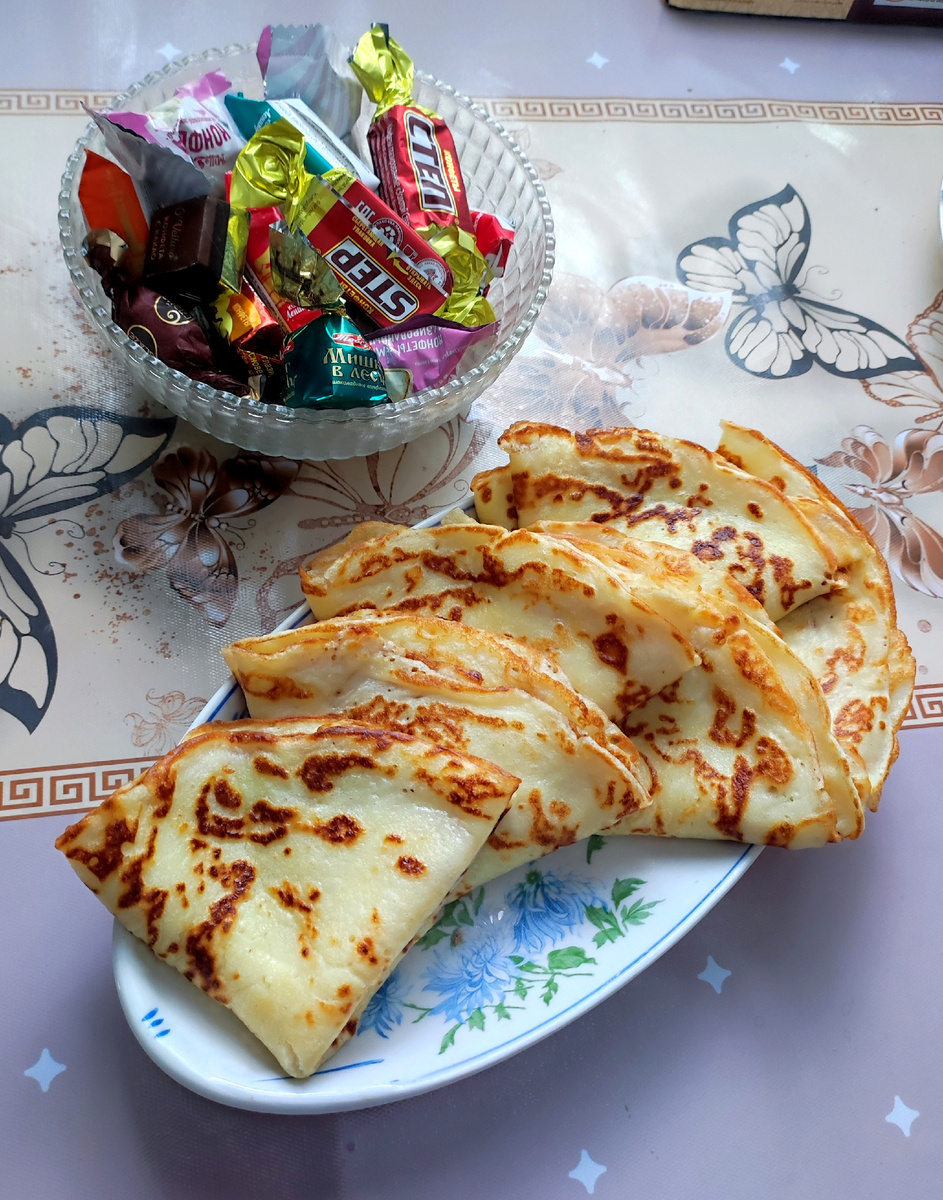 Круглая тарелочка слева, это фруктовница на ножке, Диана её так поставила, чтобы хорошо был виден рисунок.