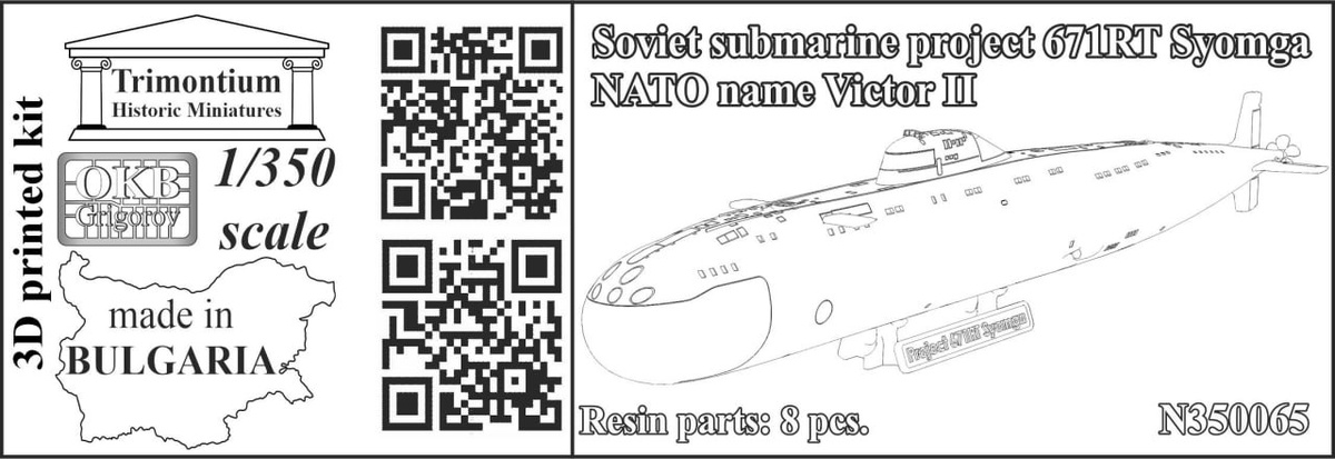 OKB Grigorov выпустили модель советской подводной лодки проекта 671Рт Сёмга в 1/350 масштабе.