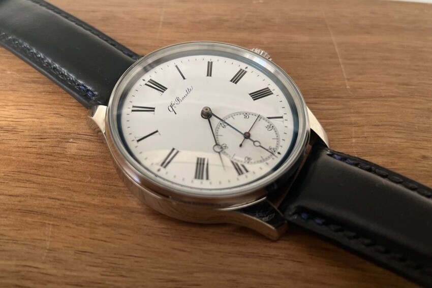 - Установлен в новый корпус в стиле Бреге из нержавеющей стали. Диаметр корпуса 48 мм. Оба стекла - сапфир.