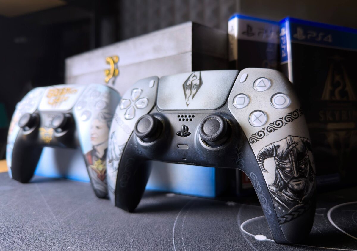 : Решили тут себе заказать кастом на два DualSense, чтобы глаза радовались (один из них в качестве подарка) И вот честно, не реклама (но ссылочку в описании я оставлю🤪), потому как настолько классной работы я не ожидал. То есть помимо самих геймпадов, которые настолько шикарно сделаны, тут ещё и кейсы, ну чисто запоздалый подарок на Новый Год. Откровенно говоря, такой сетап по-настоящему подарил праздник в уже непраздничные дни Так что если хотите нереально украсить себе геймпад – очень советую вам заказывать в Телеграм-канале VARMIR, прям без задней мысли рекомендую. Я от своего Скайримовского остался в полном восторге. Вот теперь размышляю, не закастомить ли мне весь Switch 2 Причём, если полистаете ТГ'шку, увидите процесс создания наших геймпадов и всю нереальную сложность сие действа. Тут недостаточно «просто уметь рисовать»😵 От всей души благодарю Асю за действительно сумасшедшую работу и радость, что мы получили от такого подарка 💬Чат и общение #custom #dualsense Red Ga