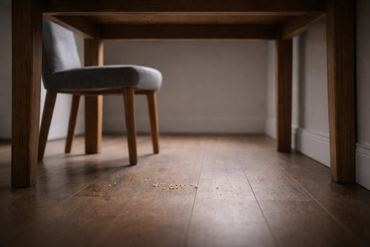После его ухода под столом образовалось пространство, которое невозможно заполнить, потому что это пространство было не просто местом, а договорённостью, которую мы заключили без слов. Никто не касается ног тёплым боком. Никто не реагирует на упавший кусочек быстрее, чем ты успеваешь это заметить. Крошки теперь лежат на полу чуть дольше - не потому что стало грязнее, а потому что исчезла вторая жизнь, которая делала кухню собранной.