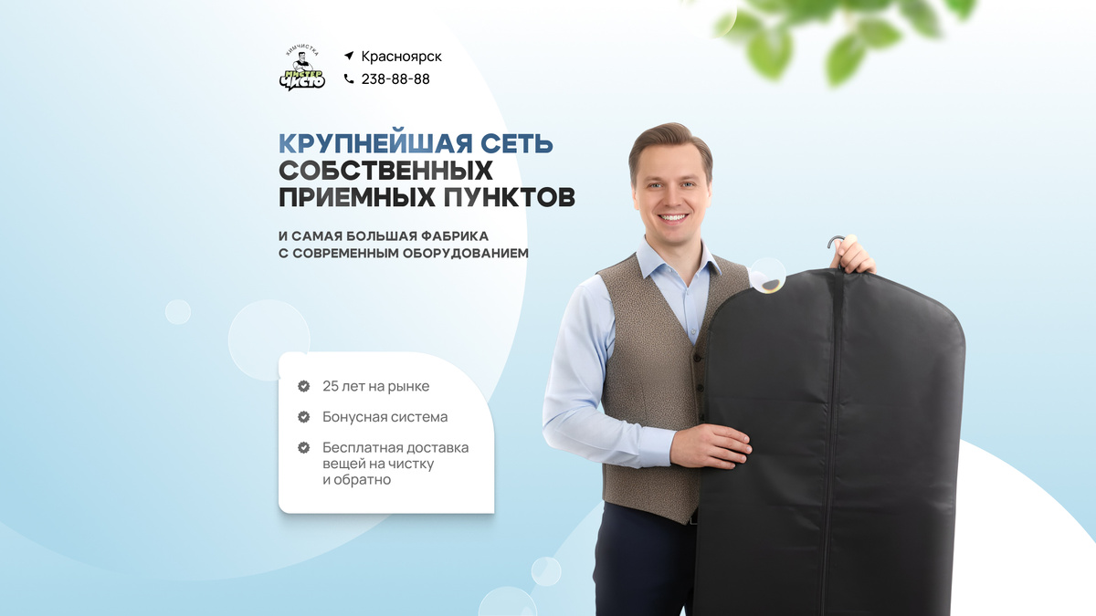 Когда любимое пальто или брендовые кроссовки теряют вид, мы ищем решение в поисковике. Но за вывеской «Химчистка» могут скрываться как маленькие мастерские, так и технологичные гиганты. Почему для Вашего гардероба безопаснее выбрать второй вариант? «Мистер Чисто» — это крупнейшая фабрика химчистки в Красноярске. С 2001 года мы доказываем: профессиональный уход за одеждой — это не роскошь, а инвестиция в долговечность Ваших вещей. Многие выбирают пункт приема поближе к дому. Но важно не то, где Вы сдаете вещь, а где её будут чистить. Наша фабрика площадью 1100 м² оснащена оборудованием из Италии, Испании и Германии. Это позволяет нам применять технологии, недоступные малым предприятиям: Для тех, кто ценит качество и свое время, мы создали сервис, где экспертность сочетается с удобством. Продлите жизнь своим вещам вместе с профессионалами, которые знают о чистоте всё.