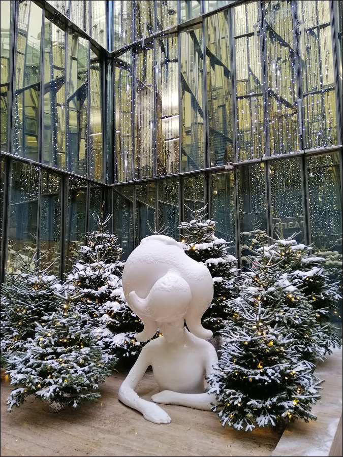 Начав финальный день нашего марафона по новогоднему Петербургу с экскурсии по особняку Половцовых, мы планировали дальше посетить «Галерею кукол», расположенную напротив — на первом этаже дома Бильдерлингов. Но из-за праздников художественный салон оказался закрытым. К сожалению — говорят, место очень атмосферное. Но куклы у нас в этот день всё же были! В конце дня мы нашли «Галерею кукол» на Невском… Но это позже. А пока мы пообедали в ближайшей столовой, заглянули в симпатичный зеркальный дворик резиденции Газпрома...