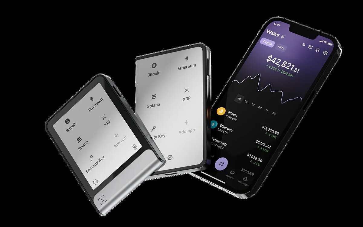 Все мы знаем: «Not your keys, not your coins». Держать криптовалюту на бирже — это как хранить деньги под матрасом в подъезде. Рано или поздно найдется тот, кто захочет их унести. Хакеры не дремлют, а биржи банкротятся. Единственный реально безопасный способ — аппаратный кошелек (холодное хранение). Но их так много, что глаза разбегаются: Ledger, Trezor, SafePal... Какой выбрать новичку, а какой подойдет для профи? Я изучил рынок и готов представить вам ТОП-5 лучших аппаратных кошельков на 2026 год. Держите список фаворитов: 🥇 Ledger Stax — главный красавчик в этом списке. У него изогнутый E Ink-дисплей, на котором можно отображать свои NFT даже когда кошелек выключен. Стильно, технологично, безопасно. 🥈 Ledger Nano X — проверенная классика с Bluetooth. Позволяет управлять криптой прямо с телефона, поддерживает более 5000 монет. Идеальный баланс цены и возможностей. 🥉 Trezor Model T — выбор гиков и параноиков. У него сенсорный экран и полностью открытый исходный код. Сообщество пост