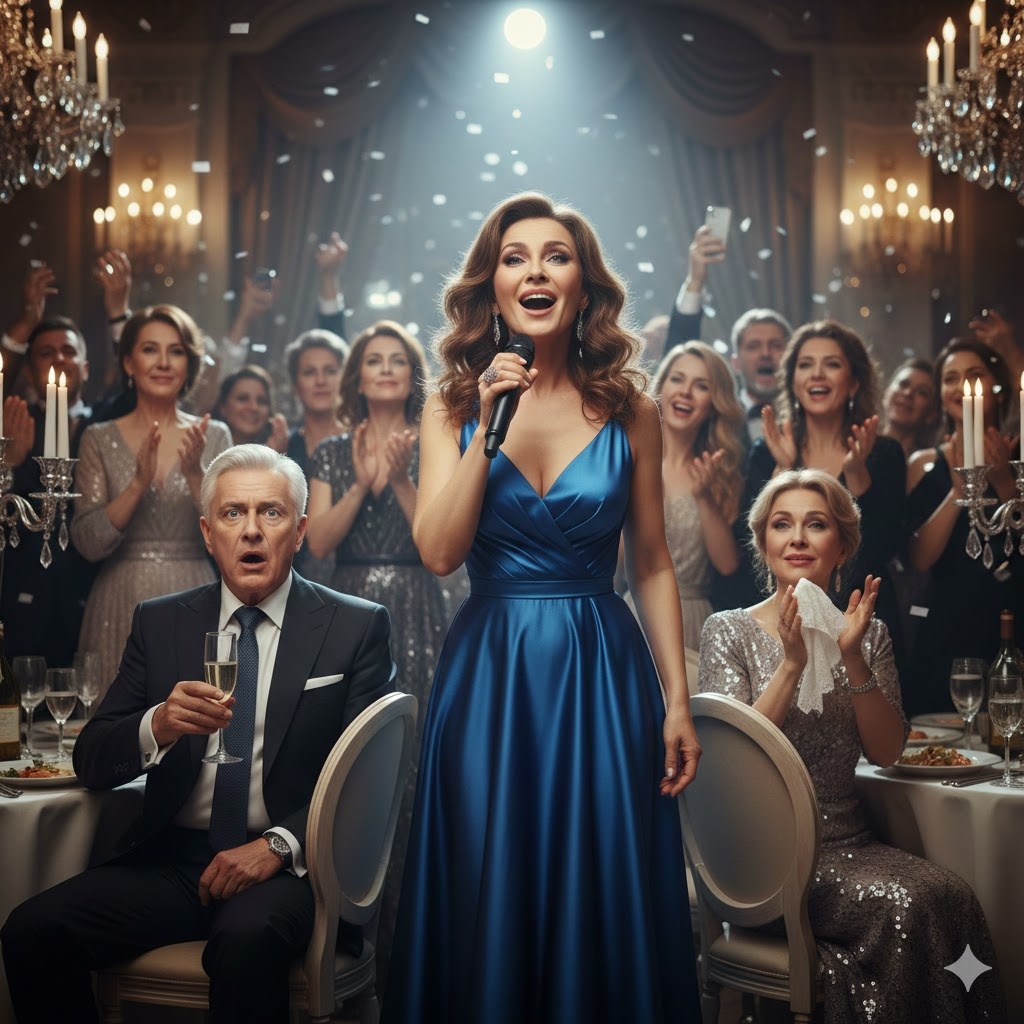 Марина закончила на высокой, звенящей ноте, которая, казалось, заставила хрустальные люстры дрожать. Она опустила микрофон. Тишина длилась еще несколько секунд — самых длинных секунд в её жизни.