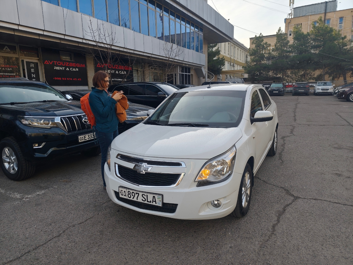 Итак, к 10 утра мы пришли в прокатную контору Avtouzbegim, где получили на двое суток в пользование белый Chevrolet Cobalt. Вот на этом автомобиле мы и отправились в поездку. День был солнечный, тёплый, что радовало и вселяло надежду на успешную покатушку.