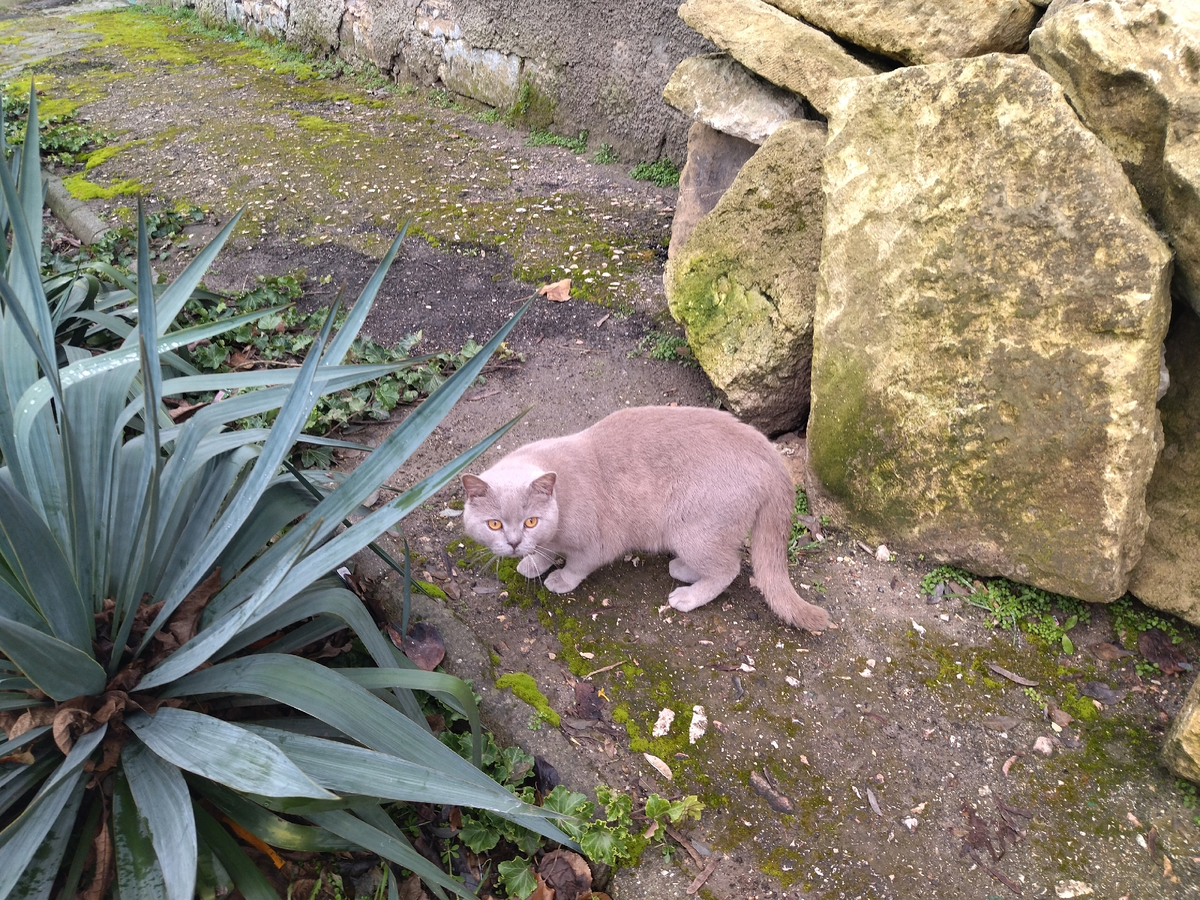 Кот был очень недоволен тем вниманием, которое я к нему проявила, поэтому фотосессия получилась смазанной, и все же хочу поделиться фотографиями. Такую редкую красоту вот так просто на улице вряд ли встретишь. Разве что на выставках посчастливится увидеть, и то редкость. Так что произошедшее – нонсенс. Кот, по всей видимости, улизнул из дома, и, наслаждаясь внезапной свободой, ходил по тихому району средь малоэтажной частной застройки, а тут – я, с этим своим щелкающим странным предметом в руках. Понятно, что ему это крайне не понравилось. Это кот британской породы, окрас лиловый. Нет, не бусый и не персиковый, и не "какой-то пыльно-серо-розовый" и уж тем более не "бледно-рыжий", как подсказывают вам ваши глаза, а именно лиловый. И если кто-то скажет "пфф, да мой Персик из подвала точно такого же окраса, и не лиловый это цвет вовсе", то поиск в интернете услужливо напомнит, что лиловыми бывают лишь коты породистые, например британские, бурманские, ориентальные, у которых этот оттен