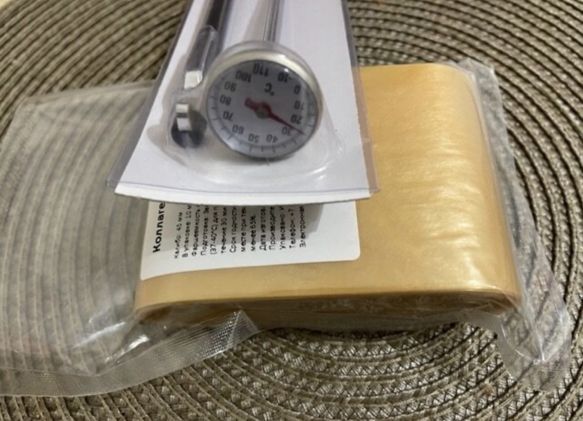 Сначала надо подготовиться. Для приготовления колбасы необходим термощуп. Оболочка для колбасы. Есть коллагеновые. Продаются на маркетах. Она бывает разного диаметра. У меня была 45 мм.