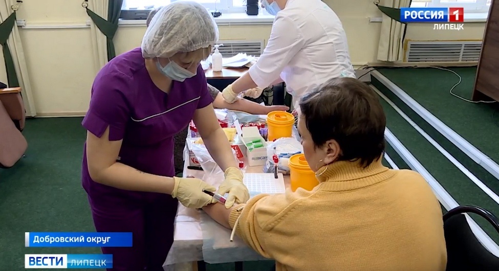 Забота о здоровье до появления болезней. Пройти плановую диспансеризацию прямо на рабочем месте — такую возможность дает ее выездной формат. В видеосюжете — кадры из Добровского округа. Среди тех, кто прошел профилактическое обследование — сотрудники местной администрации. Оно включает анализы, электрокардиограмму, флюорографию и маммографию, проверку функции внешнего дыхания и другие обследования. Которые помогают выявить заболевания или факторы риска, которые могут к ним привести. Добавим, что в минувшем году в Липецком регионе профилактические мероприятия в рамках плановой диспансеризации прошли почти 600 тысяч человек.