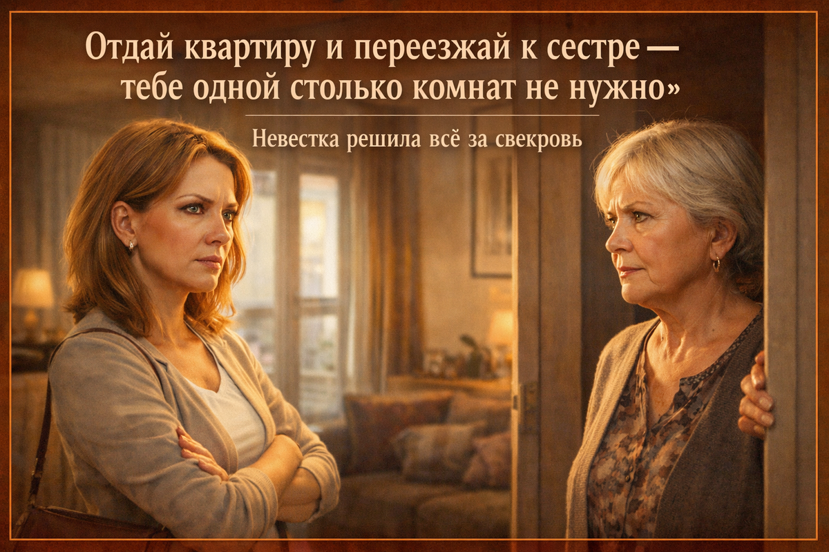 – Тамара Ивановна, мы тут с Андреем обсудили и решили. Вам одной в трёхкомнатной квартире делать нечего. Две комнаты пустуют. Это нерационально. У вас есть сестра в Калуге, у неё свой дом. Переезжайте к ней, а квартиру перепишите на Андрея.