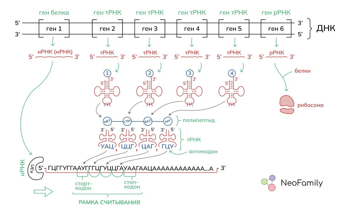 Эта наша авторская картинка из закрытых курсов поможет вам лучше вникнуть в процесс синтеза белка. Тут очень хорошо показаны ключевые моменты! Сохраняйте себе :)