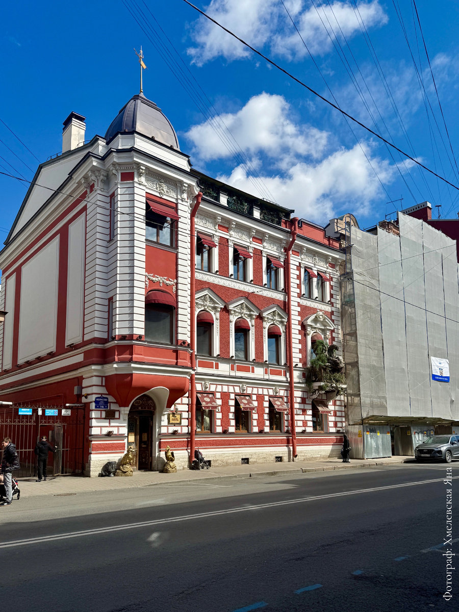 Утро в Питере — это, когда после "в Питере - пить" до 3 часов ночи, ты выползаешь через несколько часов на улицу и единственное, чего хочет твой организм — это ведро горячего кофе и ту самую жирную, обжигающую, нежную, ароматную пышку. Я шла по Некрасова в поисках подходящих заведений и вдруг среди серых фасадов, пахнущих сыростью, внезапно вырос... терем. Но не тот, из мультиков «Союзмультфильма», а какой-то психоделический сон купца-старообрядца, пересмотревшего Тима Бёртона. Это доходный дом Галунова, который теперь превратили в особняк «Небылица». Рядом со мной тормознула пара. Парень заглянул в телефон, хмыкнул и выдал: