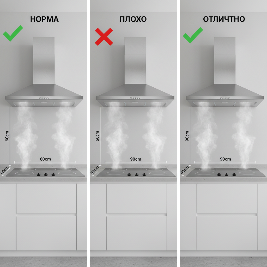 Размер вытяжки и высота ее монтажа связаны теснее, чем кажется.