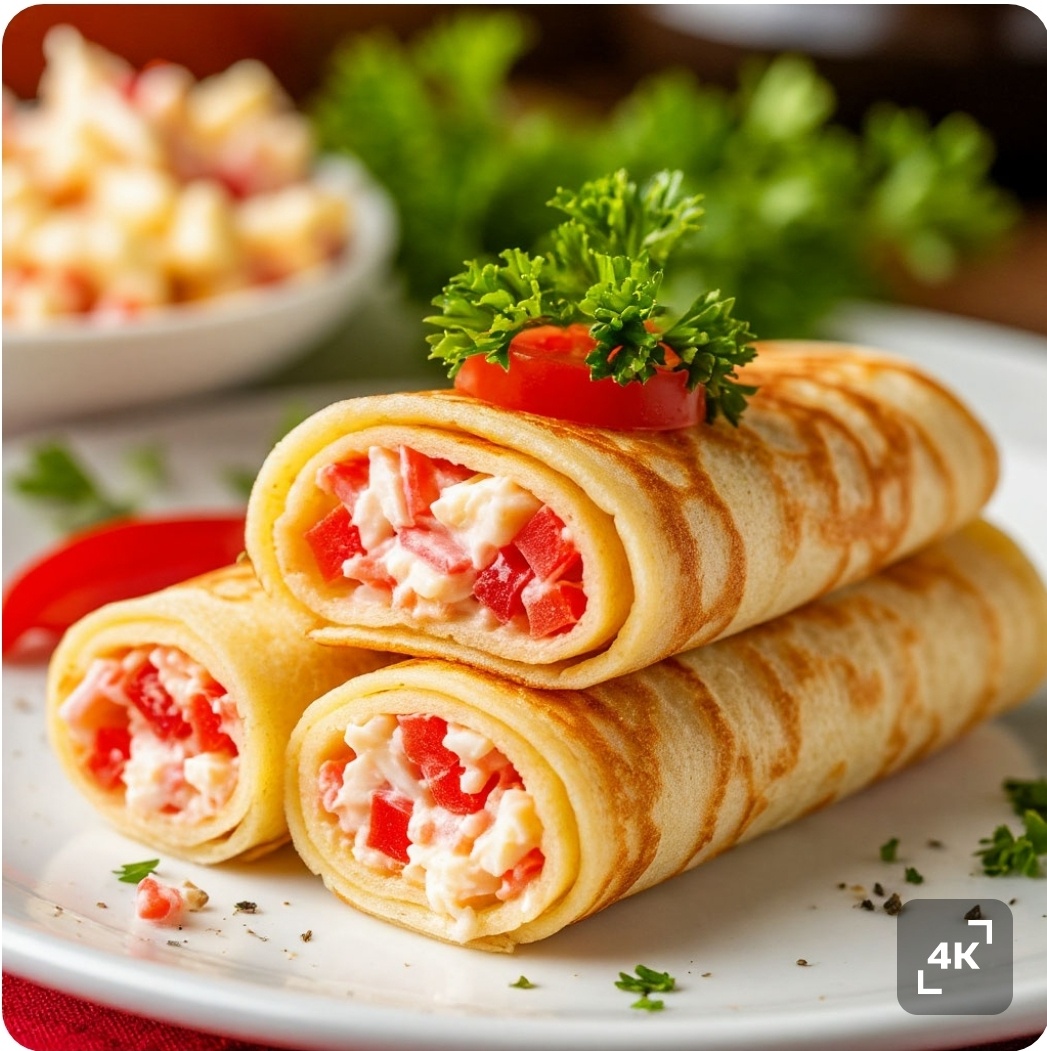 2. **Подача.** Блины на манной крупе с начинкой из крабовых палочек подавайте горячими, можно украсить зеленью или подавать с соусом на основе майонеза и чеснока, чтобы усилить вкус.