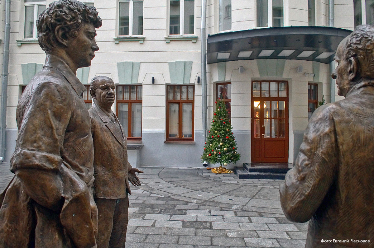 Памятник драматургам Александру Вампилову, Александру Володину и Виктору Розову (2007, скульптор Иван Саутов) установлен по инициативе Олега Табакова.