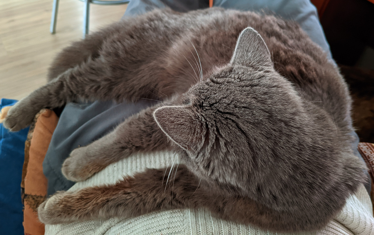 Из всех религиозных праздников я люблю больше всех Масленицу, потому что блинчики, а им мы всегда рады. Еще люблю Пасху, потому что там можно стукаться яйцами. Правда оппоненты любят лукавить, и я часто проигрываю, но все равно, весело же и яиц на неделю вперед поесть можно. Вчера как всегда вечером работали, не покладая рук и лап. Ночью разразился ураганный ветер, всё летало и грохотало, к тому же еще и магнитные бури возникли внезапно, спалось плохо, можно сказать, нехорошо спалось. Хвостам тоже было нелегко, и они помогали нам с ними не спать. Вот только заснёшь, а тут они, завывают, мол нам плохо спится и вам не дадим. Так и живем. К утру основной ветер стих, было пасмурно, градус погоды снизился до +7С, но в целом было тепло. На улицу никто идти не хотел. Только один Васька оккупировал кустик декоративной травы и лежал на ней в розарии, как на перине. Никто не хотел выходить на улицу не по причине пасмурной погоды, не потому что там хозяйничал сосед Васька, а по иной причине, по о