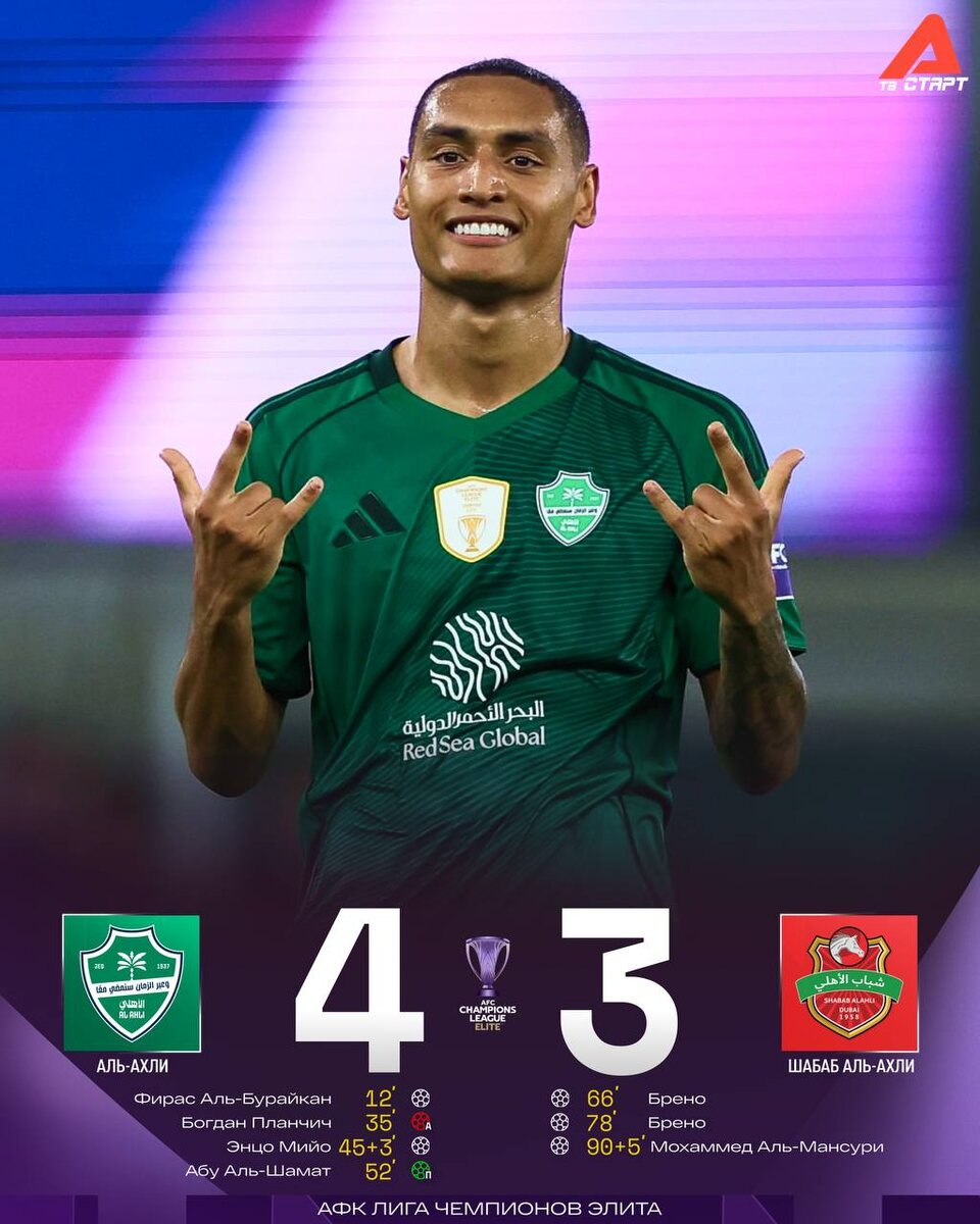 ! Всё благодаря «Насафу», который в параллельном матче переиграл «Аль-Шаржу», добыв первую победу на турнире (2:1). Следом смотрим новые матчи: «Аль-Хиляль» – «Аль-Вахда» и «Аль-Шорта» – «Аль-Духаиль» ✌🏻 Подписывайся на ТВ СТАРТ в MAX📲