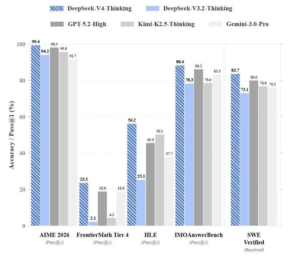 Deepseek V4 (должен выйти ориентировочно 17 февраля) обгоняет крайне тяжелый Claude 4.6 Opus и Gemini 3 Pro во всех тестах, при этом весит крайне мало и может быть локально запущен на вашем железе.