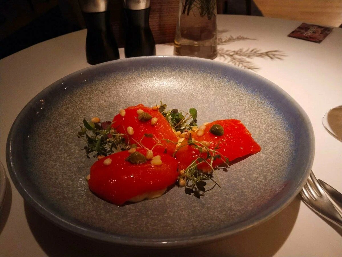 Не знаю, как это описать, чтобы не скатиться в пошлость. Это не еда. Это объятия человека, которого давно не видел, но очень скучал. Перец — сладкий, маринованный, запеченный до состояния «я твой навеки» — встречается с соусом, в котором сидит копченая рыба. Но она там как воспоминание о костре на берегу, которое не мешает, а просто греет изнутри.