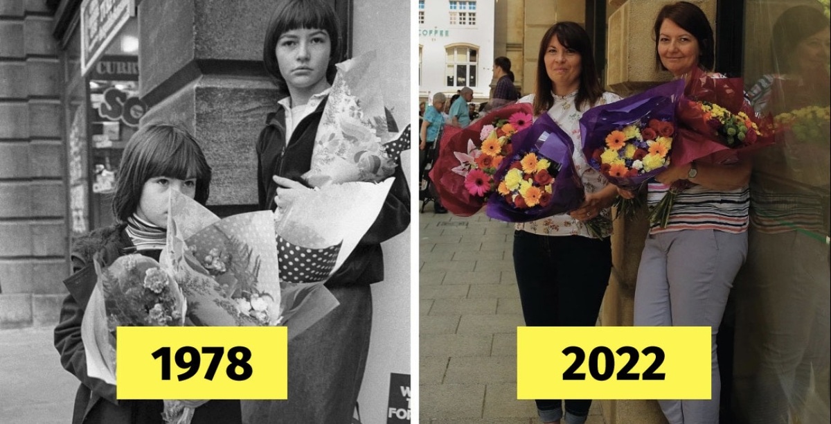Девушки-сестры ждут маму с цветами для нее, 1978-2021