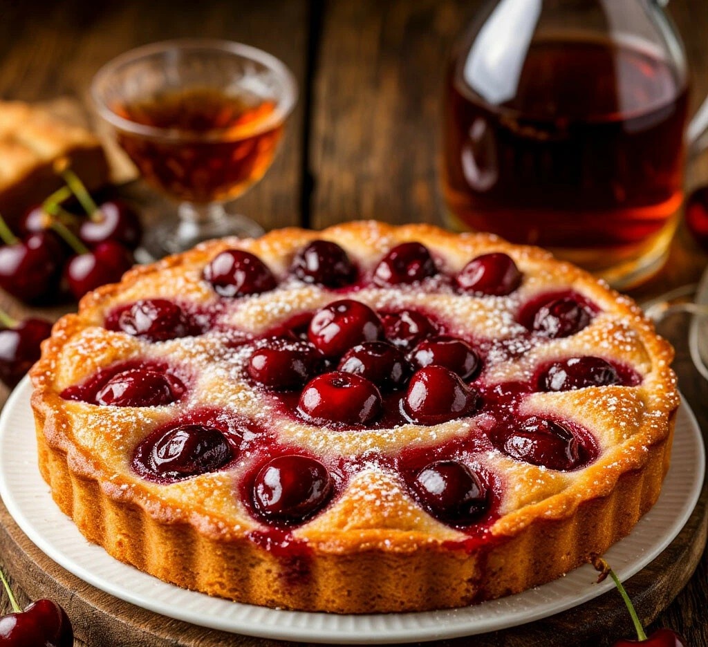 9. Готовый пирог украсить сахарной пудрой и подавать.