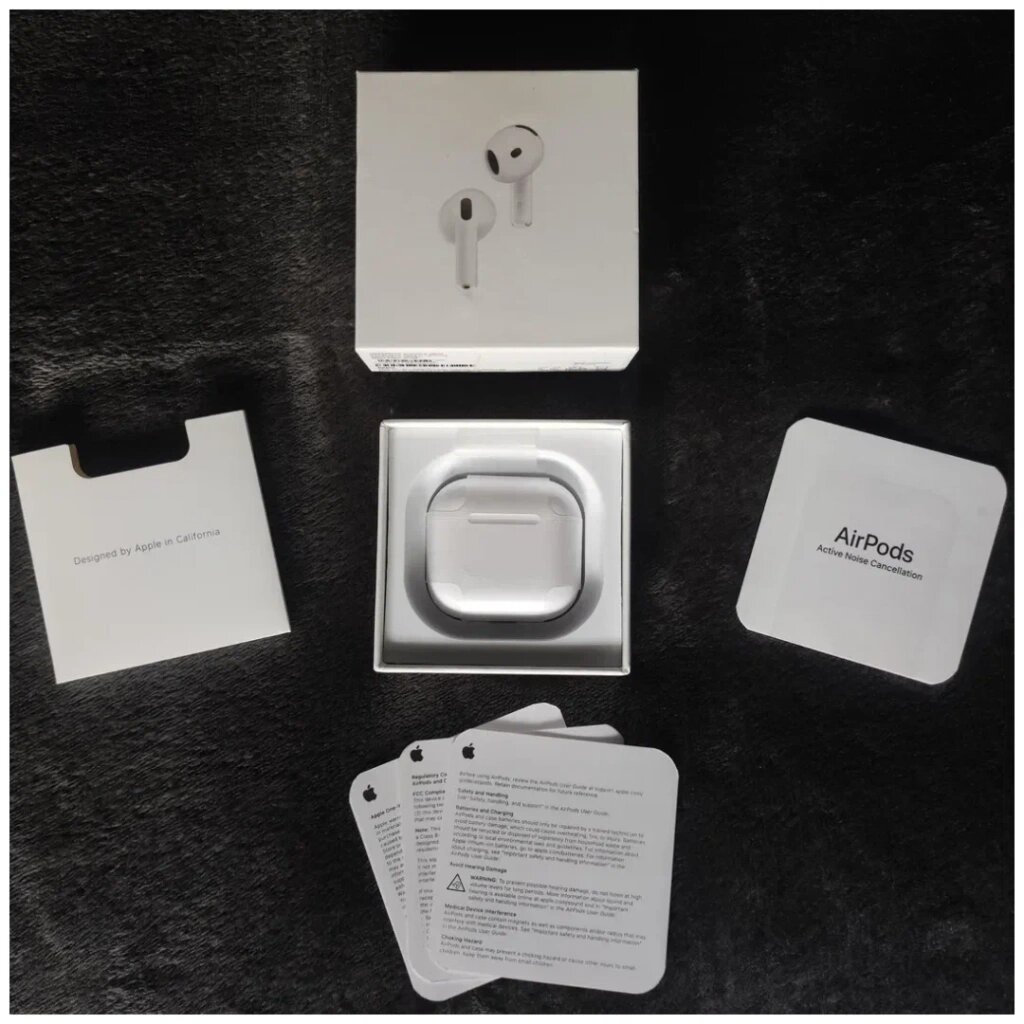 Распаковка – это всегда праздник, но здесь он с небольшим “но”. В комплекте только наушники с футляром и бумаги. Зарядного кабеля нет. Это, честно, немного разочаровывает, особенно если переходишь с Android-устройств или это ваш первые AirPods – придется докупить USB-C кабель отдельно.