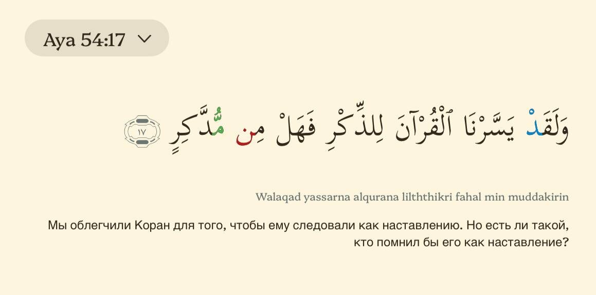 … Что со мной, если я не чувствую эту легкость? Что с моим сердцем, если я не вижу эту легкость? Что меня ослепляет, становится преградой для понимания? Ведь Аллах облегчил… Нужно начать просить у Аллаха, чтобы Коран стал таким вот легким для поминания и понимания! Совсем немного осталось до времени, когда прольется на людей великая милость и безграничное облегчение в месяц Рамадан, давайте начнем просить у Аллаха облегчения во всем, что вам хочется включить в вашу жизнь на постоянной основе. Пусть малое, но то, что будет у вас всегда, до последнего вашего вздоха. Что бы вы хотели попросить у Аллаха? Какое поклонение, чтобы Он вам облегчил? Быть может заучивание Корана? Понимание Корана? Ежедневное чтение Корана? А может быть все вместе?