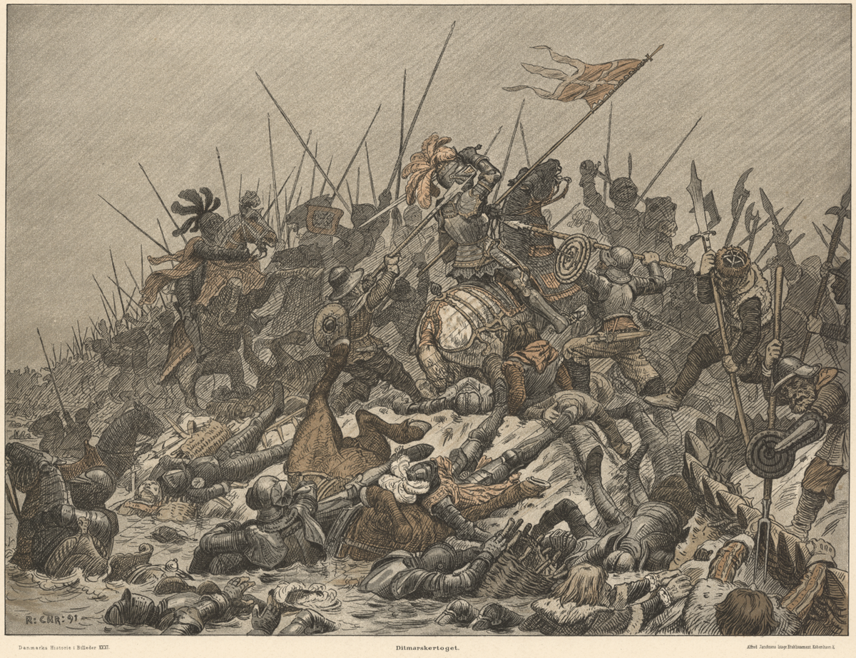 Королю нужны были деньги и слава усмирителя мятежников. Дитмаршен казался легкой добычей. Во-первых, это богатый регион, который можно обложить налогами. Во-вторых, это стратегически важная территория. В-третьих, это дело принципа. Еще в 1473 году император Фридрих III, которому, видимо, было не до разбирательств в болотных тонкостях, пожаловал права на Дитмаршен датской короне. Крестьяне, конечно, этот указ проигнорировали, сославшись на то, что подчиняются только Папе Римскому (который, к слову, тоже выдавал им какие-то охранные грамоты), но для юристов короля бумажка от императора была весомым поводом для войны.
