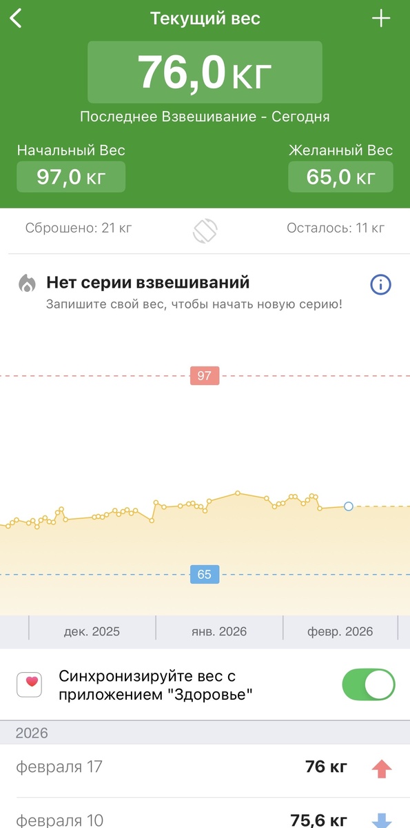 Осталось сбросить 8,3 кг жира, значит за неделю 100 грамм жира все таки прилипло.
