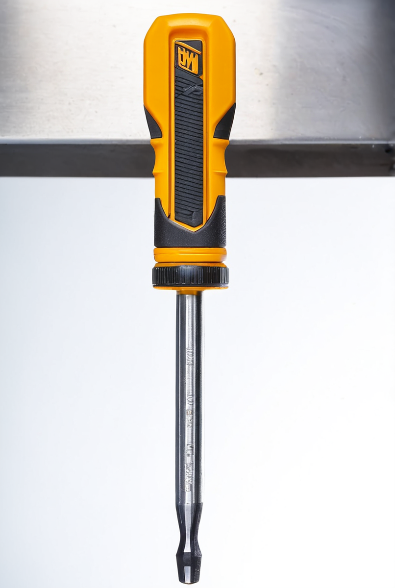 Конструкция для высоких нагрузок: стержень из CrV стали (хромованадиевая сталь), магнитный наконечник и двухкомпонентная эргономичная рукоятка для надежного хвата