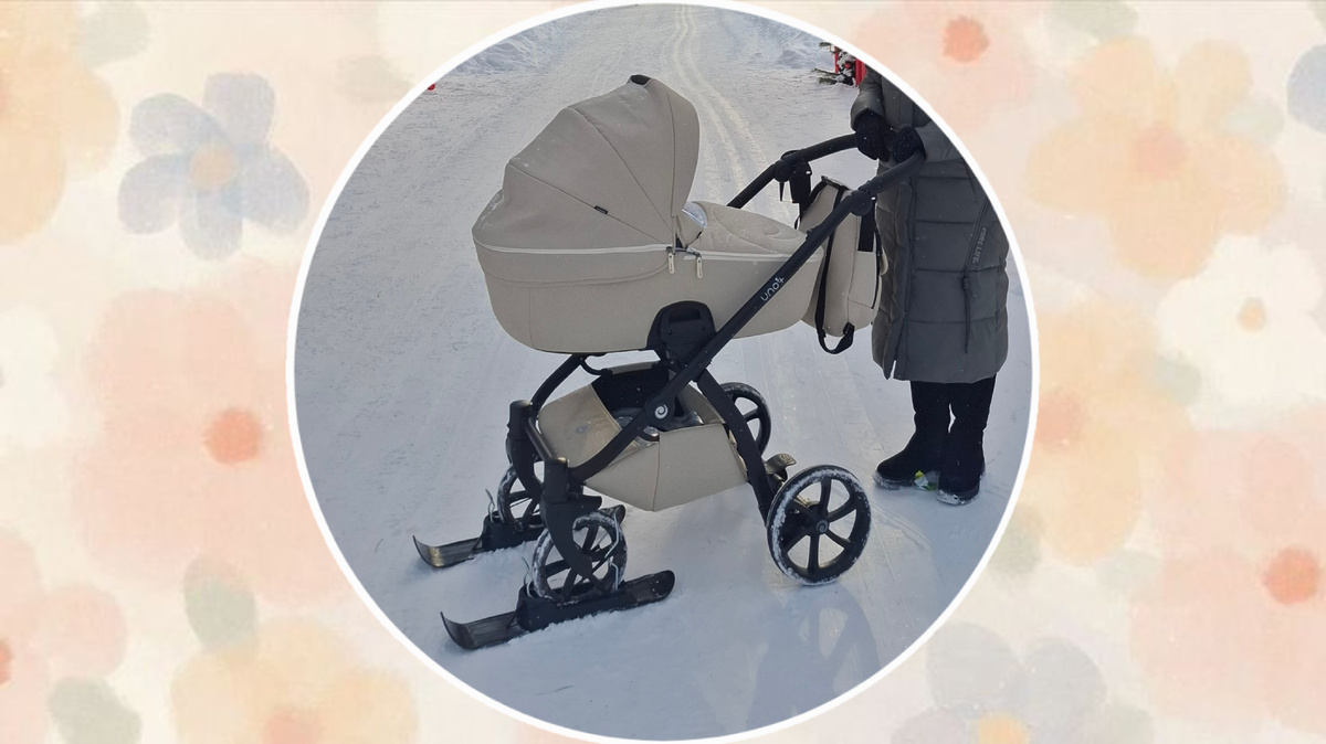 - Также немалое значение имеет и комфорт для родителей. По снегу гораздо проще возить коляску с лыжами, не приходится постоянно ее проталкивать, экономятся силы.