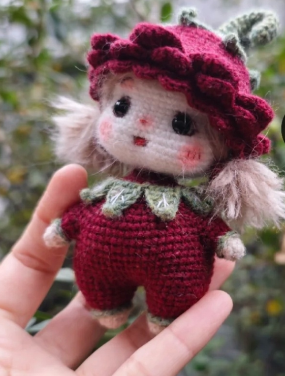 Примечание: Черным цветом в тексте схемы обозначена пряжа "белый длинноворсовый ангора", красным цветом – пряжа "бордо 18", зеленым цветом – пряжа "зеленый мох 23". Волосы вяжутся из длинноворсовой ангоры цвета светло-коричневый. Общий уровень сложности: ★★★!