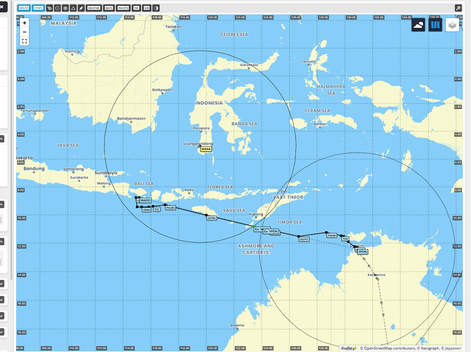 Ну вот мы и покидаем Евразию и летим на совершенно неизведанную (для меня) такую далёкую Австралию. Видел на фото где-то, что в большинстве там дикая природа и «марсианские пейзажи». Контраст слабоват, и заранее извиняюсь за царапины на стекле. Вдалеке остров Бали, а чуть правее виднеется вулкан Ринджани, в его жерле сформировалось озеро Сегара. Спустя 1 час 12 минут полёта внизу сквозь облака просматривается остров Кабупатен-Роте-Ндао — это последний остров на маршруте в Индонезии, через 60 миль уже воздушное пространство Австралии. Дальше меняем частоту и приветствуем диспетчера. От Москвы по прямой это почти 11000 километров. Северное побережье Австралии. На посадке ветер хоть и устойчивый, но 19 узлов. Надолго задерживаться тут не будем. Очень хочется разглядеть дикую Австралию, и в честь этого добавляем ещё одну точку: аэропорт Элис-Спрингс, что практически в самом центре. А это будет в следующем посте!