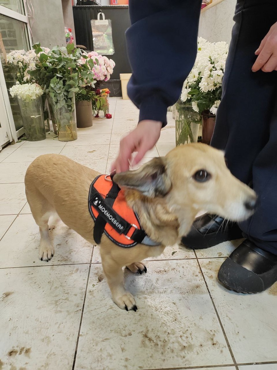 Найдена собака девочка Кудрово, Столичная улица дом 11 кр 1, сейчас находится в цветочной круглосуточном магазине, просьба помочь рептстами, видно что домашняя потерялась, напугана.