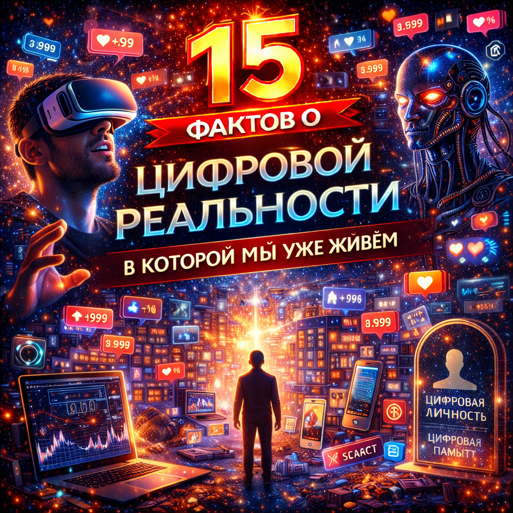 Мы привыкли думать, что цифровой мир — это «дополнение» к реальному. Но правда в том, что он уже стал частью самой реальности. Мы не «заходим» в интернет — мы в нём существуем. Вот 15 фактов, которые доказывают: цифровая реальность уже формирует нашу жизнь сильнее, чем мы думаем. Алгоритмы знают о нас больше, чем друзья. История просмотров, покупки, маршруты, реакции, голос, лицо — всё это формирует цифровую модель личности.