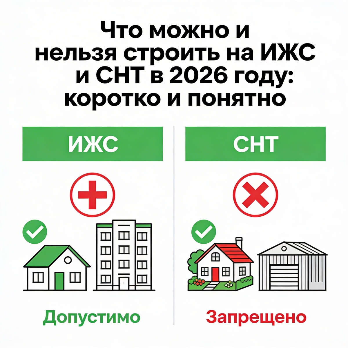 🏗 Что можно и нельзя строить на ИЖС и СНТ в 2026 году: коротко и понятно