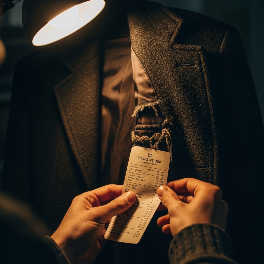 Карманы были пусты. Но когда я уже вешал пиджак обратно, пальцы нащупали странное уплотнение в районе подкладки у самого подола. Аккуратно подрезав шов, я вытащил небольшой, сложенный вчетверо листок бумаги.