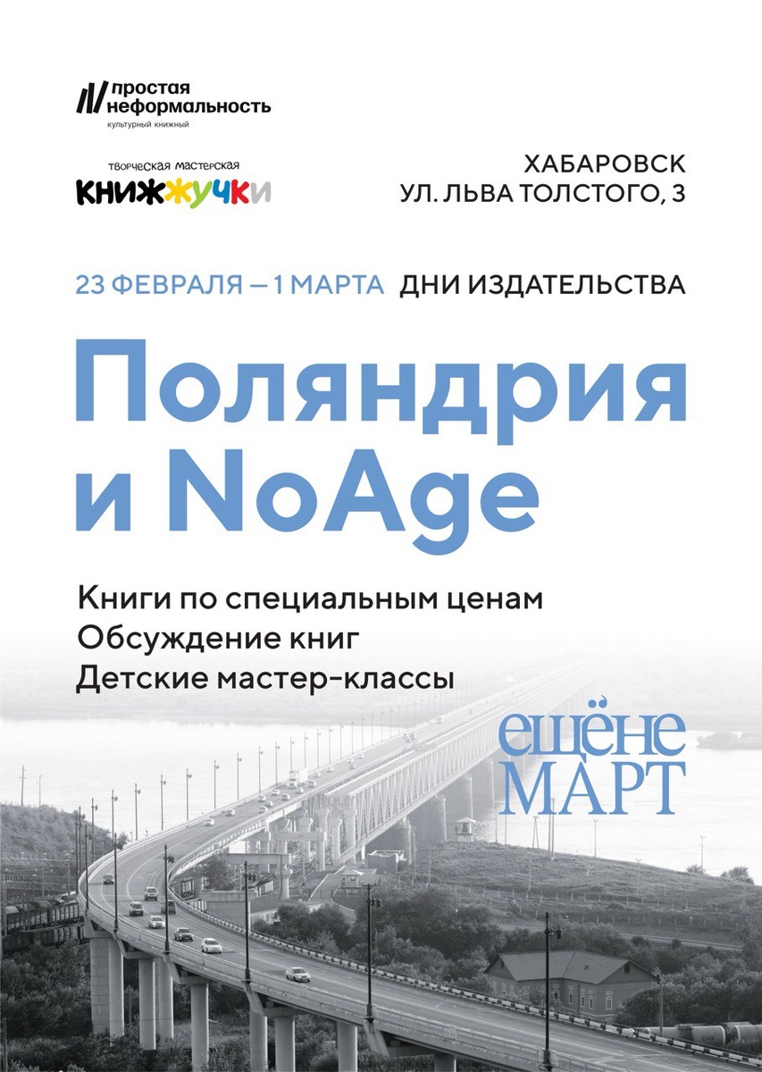 » ✔ Специальные цены на книги от издательства «Поляндрия» ✔ Обсуждения книг и лекции ✔ Презентация новых книг издательства ✔ Детские мастер-классы в творческой мастерской «Книжжучки» ✔ Приятная компания команды и культурная атмосфера 📅 Когда: #23_февраля — #1_марта ⛳ Где: ул. Льва Толстого, 3 💳 Вход свободный 👉 Афиша Хабаровска. Куда сходить, экскурсии