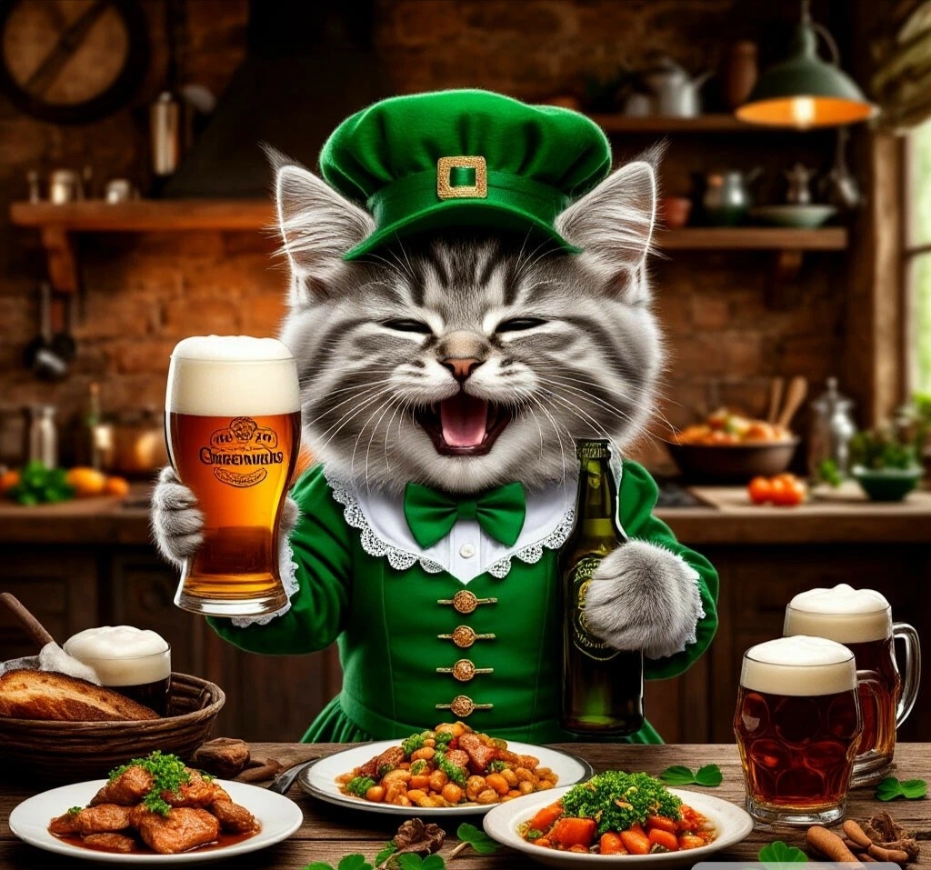 Мяу, мои пушистые путешественники! 😺✈️ Вторник — день национальной кухни, и сегодня мы отправляемся на Изумрудный остров! Да-да, мы летим в Ирландию! 🇮🇪🍀 Там, где зелёные холмы встречаются с суровым океаном, а в каждом пабе играет живая музыка и пахнет сытным рагу.