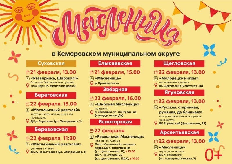 Праздничные гуляния на Масленицу в Кемеровском округе - полная афиша