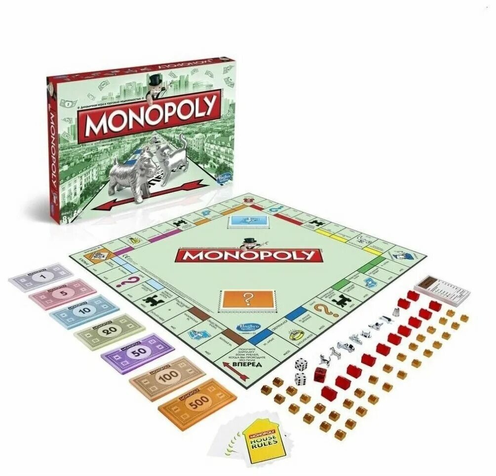 «Монополия» (детская версия). Экономическая игра, адаптированная для детей. Например, «Моя первая монополия. Маша и Медведь» использует тематику мультфильма, что делает правила и объекты более понятными для детей. Игроки покупают и продают недвижимость, строят дома и отели, цель — довести соперников до банкротства и стать самым богатым.