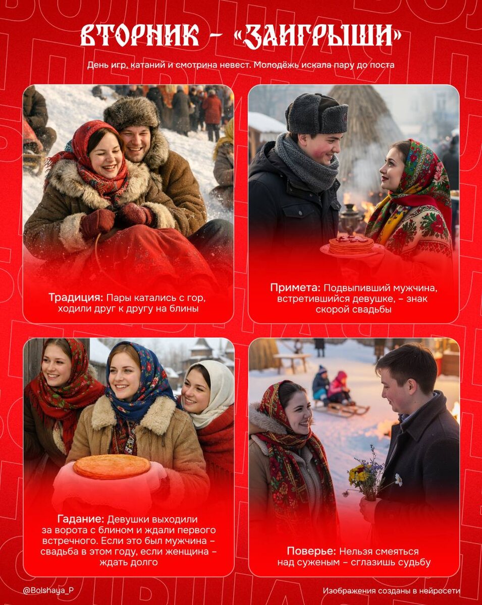 Во второй масленичный день, а это сегодня, на Руси было принято кокетничать, привлекать внимание, заигрывать с противоположным полом. Ну, и блинами, разумеется, угощать и угощаться. Тот самый день, когда пора начинать поднимать демографию в стране 😘 ❤️ Подписаться | Предложить новость | Дать «буст» | Мы в MAX