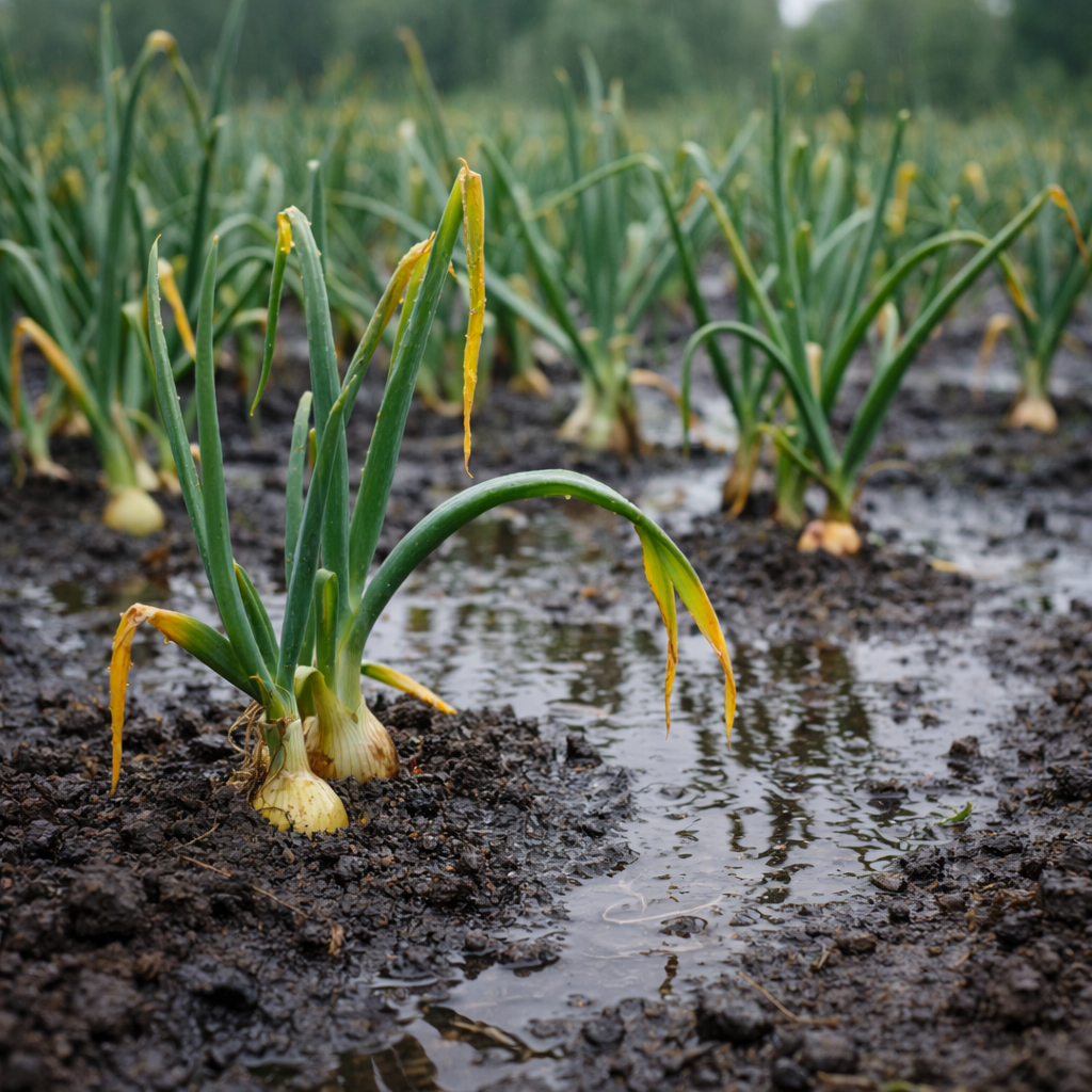 Лук кажется выносливой культурой. Он спокойно переносит прохладу, не боится лёгких заморозков и редко капризничает. Но есть один фактор, который он переносит особенно плохо — переувлажнение. Иногда грядка выглядит зелёной и благополучной, а потом перо начинает желтеть, луковицы остаются мелкими или загнивают. Причина часто не в нехватке питания, а в избытке воды. Корневая система лука поверхностная и чувствительная к нехватке кислорода. Когда почва: между её частицами почти не остаётся воздуха. Корни в такой среде работают хуже. Они не могут полноценно усваивать питание, и рост замедляется. Сначала изменения незаметны. Но через 1–2 недели перо начинает терять яркость. При переувлажнении: Часто это принимают за нехватку азота и начинают подкармливать. Но лишние удобрения в сырой почве только усиливают проблему. На самом деле растение испытывает кислородное голодание, а не дефицит питания. Самая серьёзная проблема — влияние на формирование самой луковицы. Если почва долго остаётся влажно
